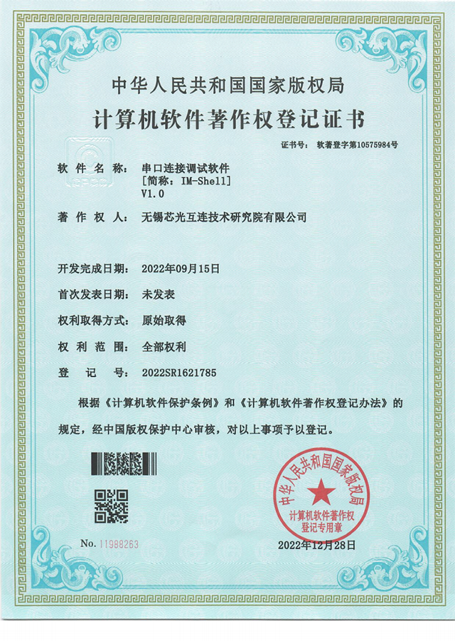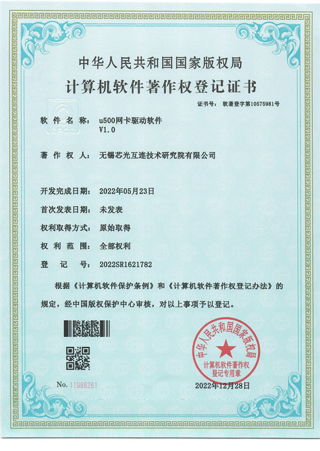研究院重视知识产权工作,2022年单年度获得10余项软件著作权, 为研发产生的驱动、测试、协议转换等程序提供保护。