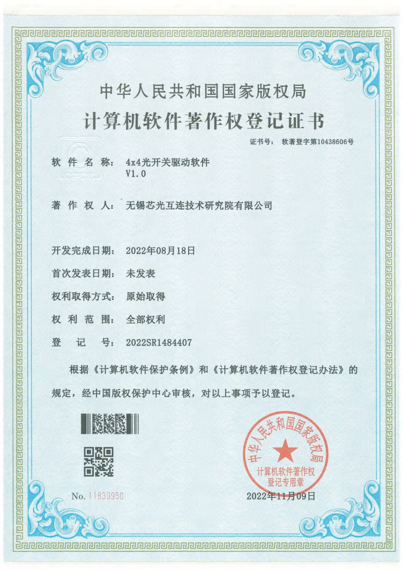研究院重视知识产权工作,2022年单年度获得10余项软件著作权, 为研发产生的驱动、测试、协议转换等程序提供保护。